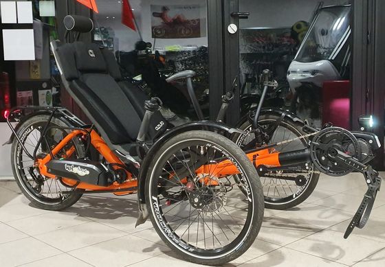 Voici un exemple de tricycle AZUB T-Tris 20 équipé avec de nombreuses options et accessoires : siège AZUB DreamSeat, moteur Shimano EP6, boîte de vitesses électrique, commandable tant avec la main gauche que droite, freins couplés, manivelles réglables, poignées d'appui, éclairage puissant alimenté par l'assistance électrique, appuie-tête réglable sans outils,...